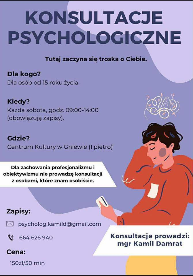 Albo przez konto FB: Kamil Damrat Psycholog