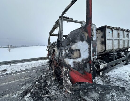 Nocny pożar ciężarówki na DK90 w kierunku mostu na Kwidzyn. Jak informuje nas aspirant prasowy Komenda Powiatowa Policji w Tczewie Katarzyna Ożóg kierowcy