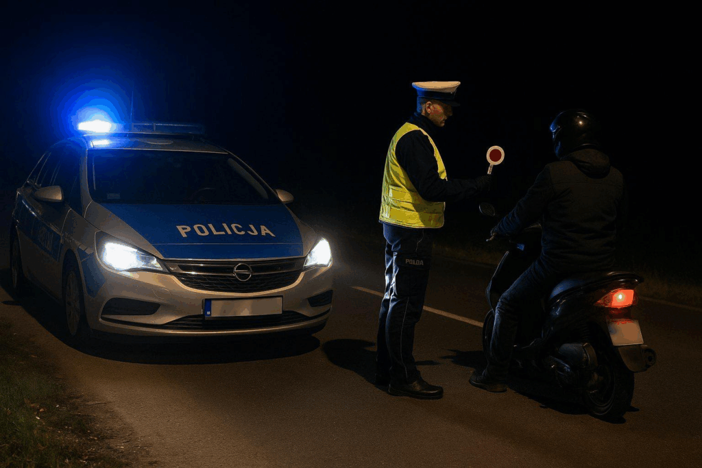 Podczas interwencji mężczyzna próbował wręczyć policjantom łapówkę w wysokości 5 tys. zł – w efekcie trafił do aresztu, a motorower odholowano na parking policyjny.