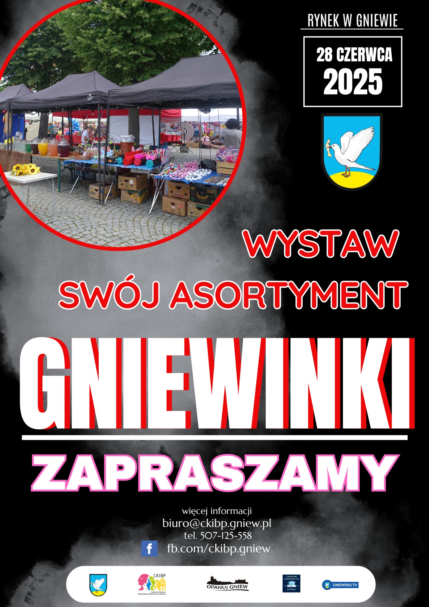 Drogi wystawco już niedługo GNIEWINKI Zapraszamy wszystkich chętnych wystawców do zaprezentowania swojego asortymentu i rękodzieła podczas Gniewinek Jeśli chcesz wystawić swoje stoisko prosimy o zapoznanie się z regulaminem oraz wypełnienie formularza: https://ckibp.gniew.pl/wydarzenia-1/gniewinki-2025 Wszelkie informacje udzielamy telefonicznie pod numerem 507-125-558 lub zapraszamy do naszego biura Plac Grunwaldzki 16/17 Na zgłoszenia czekamy do 20 czerwca GNIEWINKI 28.06.2025 […]
